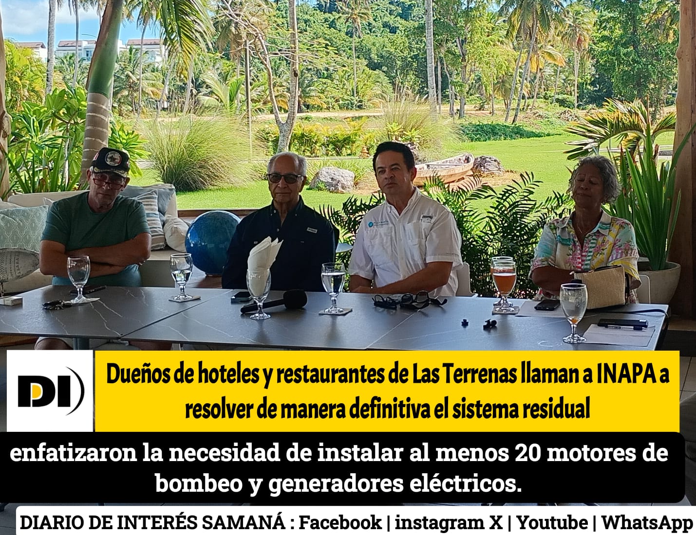 Las Terrenas, Samaná. — La Asociación Punta Bonita, compuesta por propietarios de Hoteles y Restaurantes de Playa Bonita, junto a diversos sectores de la sociedad civil del municipio de Las Terrenas, reiteró un llamado urgente al director del Instituto Nacional de Aguas Potables y Alcantarillados (INAPA), Wellington Arnaud, para que se ofrezca una solución definitiva al sistema de drenaje pluvial y residual que por años ha afectado a la población.